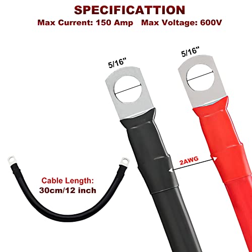【Set di cavi per inverter per batteria da 16 mm】 Cavi Inverter Batteria: 30CM Auto cavo della batteria è un 2AWG cavi. Un set di cavi per batteria positivo (rosso) e negativo (nero), ideali per collegare le batterie in parallelo o in serie.