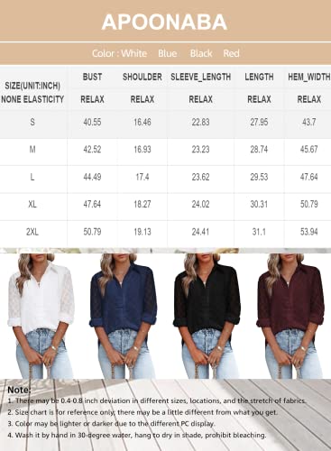 APOONABA Top Eleganti da Donna con Scollo a V Tinta Unita Camicetta Casual a Quadri con Maniche Trasparenti Bianco S