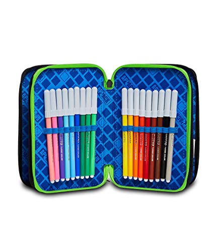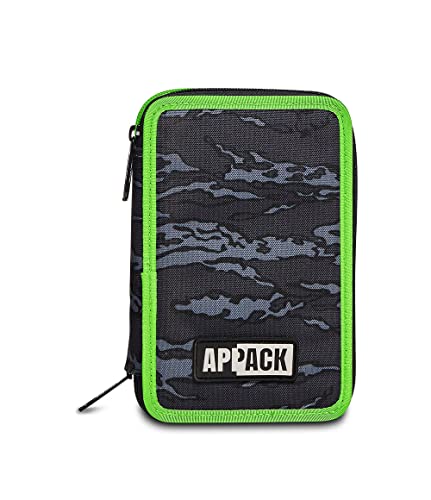 Appack Astuccio 3 Zip a ppack, Nero, Completo Di Matite, Pennarelli, Scuola y Tempo Libero