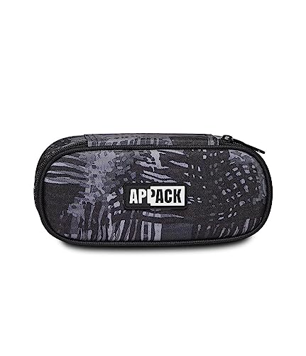 Appack Portapenne Scuola Round Plus, Nero, Bustina Ovale con Elastici Porta Penne e Taschino Interno, Accessori Zaino, Scuola