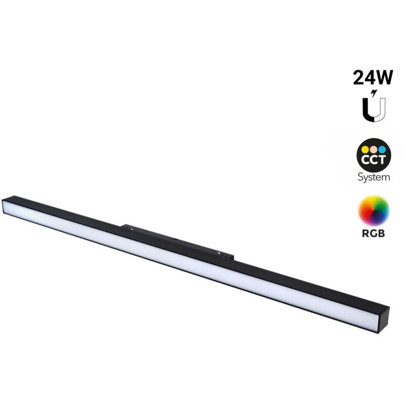 Faretto lineare a binario magnetico, con potenza di 24W, dal design moderno e di grande versatilità. Si installa facilmente premendo la base sul binario, senza bisogno di attrezzi. Offre molteplici opzioni cromatiche grazie al sistema RGB, e al sistema CCT che consente di regolare la temperatura del bianco da bianco caldo a bianco freddo. Il controllo del colore, della tonalità, della luminosità e della saturazione si realizza tramite un telecomando Mi Light compatibile. Grazie all'ampio angolo di apertura del fascio luminoso (120°), fornisce un'illuminazione generale e ambientale.