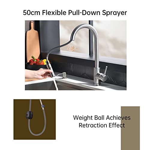 Nessun idraulico necessario - Il rubinetto della cucina in acciaio inossidabile richiede solo pochi passaggi per l'installazione, senza idraulici o strumenti speciali, e ci vogliono solo circa 20 minuti per completare l'installazione. Goditi questo rubinetto!