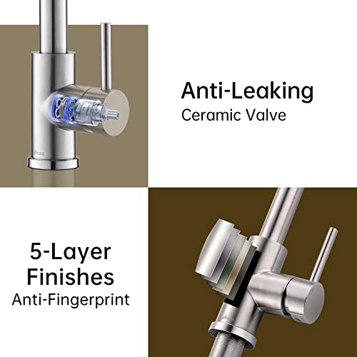 Lunga durata: il rubinetto della cucina è realizzato in acciaio inossidabile senza piombo di alta qualità, antiruggine, stabile e robusto. La cartuccia in ceramica riduce le perdite, resiste a 500.000 test di apertura e chiusura, lunga durata, tenuta eccellente, nessuna perdita d'acqua