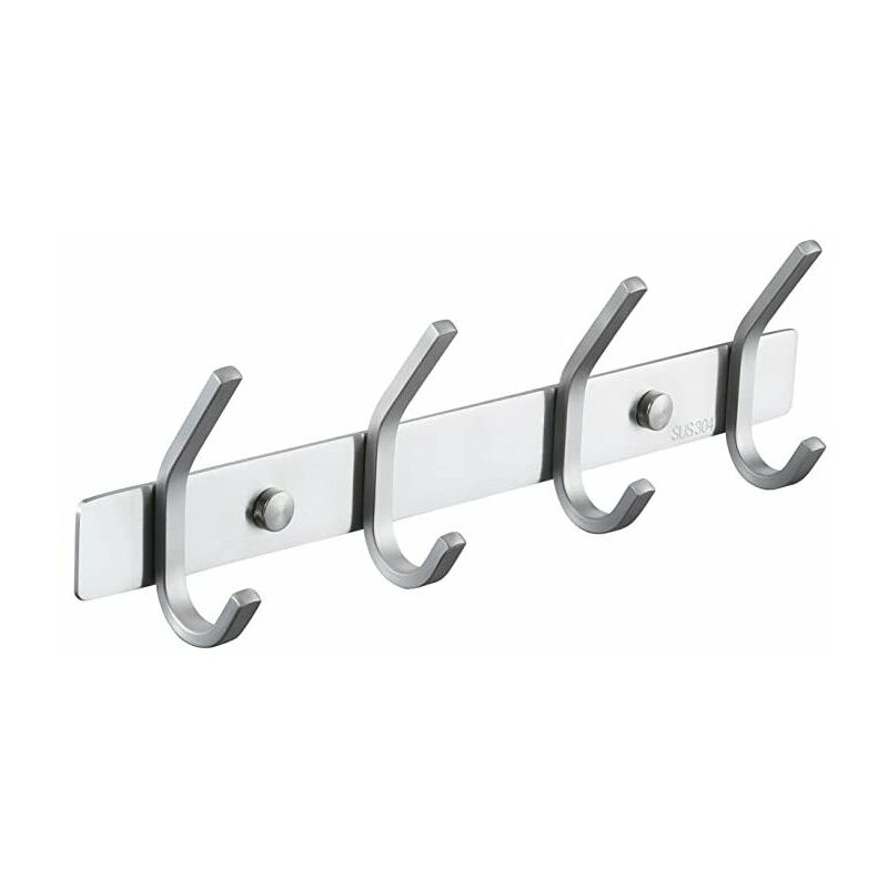 Acciaio inossidabile SUS304 - resistente alla ruggine e durevole: a differenza di ganci appendiabiti simili realizzati in lega di zinco soggetta a ruggine o acciaio inossidabile 201, KES utilizza acciaio inossidabile 304 di alta qualità per rendere i ganci appendiabiti resistenti alla ruggine e alla corrosione. Inoltre, l'acciaio inossidabile 304 di grosso calibro impedisce ai ganci da parete di piegarsi e rompersi ed è abbastanza forte da contenere oggetti più pesanti come vestiti, borse o asciugamani da bagno. Carico massimo: 5 kg. Splendidamente realizzato - Finitura spazzolata e viti nascoste: la finitura di questo appendiabiti KES è una finitura liscia in acciaio inossidabile spazzolato progettata per resistere ai graffi e alla corrosione quotidiani e prevenire i ganci. Inoltre, le viti in acciaio inossidabile sono nascoste, questo design elegante e moderno starà benissimo nella tua casa.,Compatto ma pratico: questi 4 ganci salvaspazio sono perfetti per qualsiasi area della tua