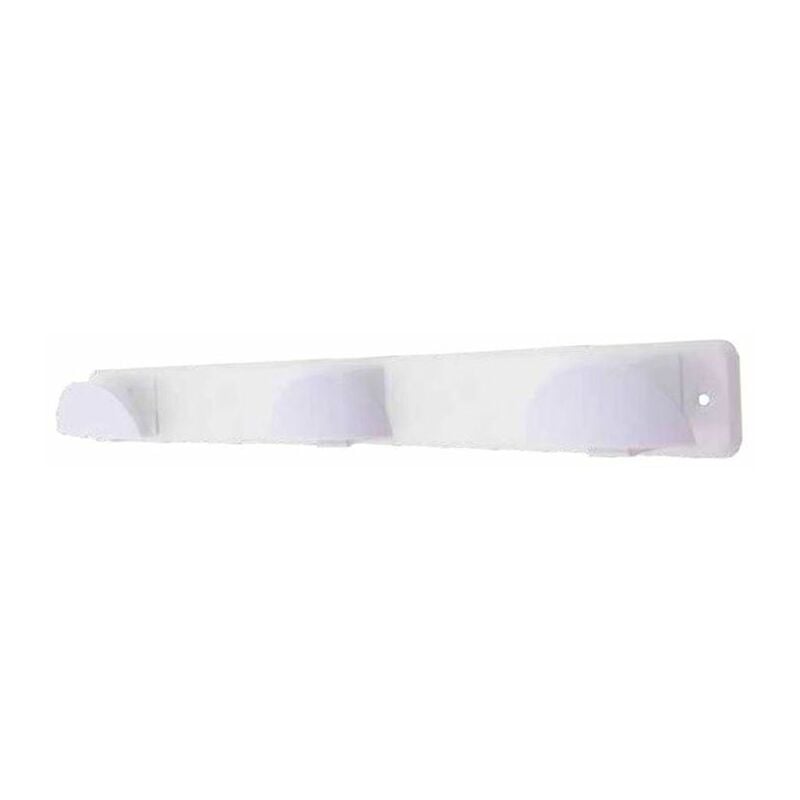 Appendino semicircolare con 3 pomelli bianchi Materiale: base in acciaio inossidabile e pomello ABS. Include tasselli e viti. Design a forma circolare per evitare danni ai vestiti.