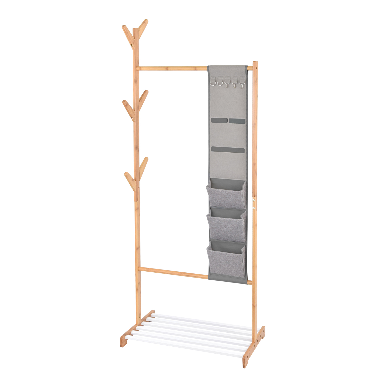 Lo stander appendiabiti di Domopak Living con multitasca è realizzato in bamboo, un'alternativa ecocompatibile al legno tradizionale. Comodo da usare, si adatta a qualsiasi tipo di arredamento, dando un tocco di semplice eleganza ai tuoi ambienti. Puoi utilizzarlo per appendere giacche, abiti ma anche come svuota tasche, grazie all'organizer multitasca incluso. Il ripiano inferiore può essere utilizzato per poggiare ordinatamente scarpe e calzature. Dimensioni: 65x167x38cm.