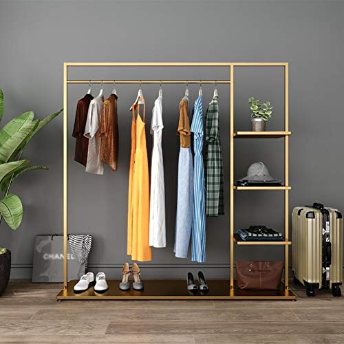Appendiabiti Feifei Ingresso Nordic Bastone Ripiani 4-Tier ad Alta capacità Ferro battuto Appendini Negozio di Abbigliamento Display Stand Clothes Organizer Oro 3 Formati