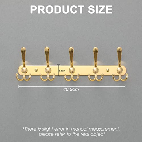 Appendiabiti a Parete - Ganci Appendiabiti Attaccapanni da Muro, Ganci Spesso Durevole in Acciaio Inox Appendi Accappatoio Asciugamani Cappotti Abiti per Bagno Cucina (5 Ganci 2 Pezzi, Oro)