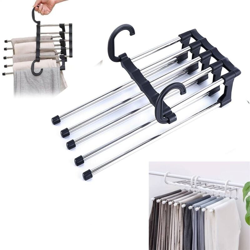 Risparmia facilmente spazio nel tuo armadio con il nostro appendiabiti salvaspazio! Ogni appendiabiti è progettato per avere cinque strati per diversi tipi di vestiti, il che consente di risparmiare molto spazio. È dotato di doppi ganci che tengono al sicuro i tuoi vestiti. I ganci possono anche essere utilizzati in vari modi per appendere pantaloni, gonne, jeans, camicie, asciugamani di diverse dimensioni e altro ancora. L'appendiabiti salvaspazio rende l'organizzazione del tuo guardaroba estremamente semplice ed è anche molto pratico per gli armadi più piccoli. Risparmio di spazio: ogni ripiano ha 5 strati di grucce, che consentono di risparmiare molto spazio nell'armadio, nel guardaroba, nel bagno, nella camera da letto, nella cucina, ecc. Doppi ganci: i doppi ganci in acciaio inossidabile tengono saldamente anche gli oggetti più pesanti e consentono inoltre di modificare facilmente le grucce in diversi modi. Versatile e multifunzionale: l'appendiabiti può essere utilizzato per