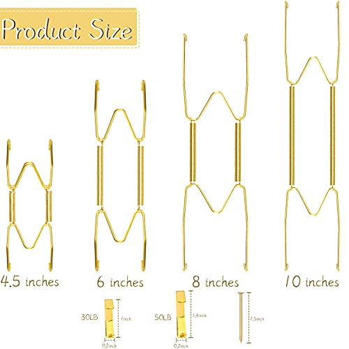 20 Appendini per Piatti a Parete Invisibili 4/5/ 6/8/ 10 Pollici Appendipiatti da Esposizione Decorativi in Filo Metallico Portapiatti da Muro in Acciaio con 20 Ganci con Chiodi (Oro)