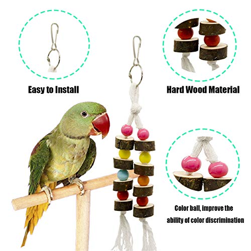 Appeso scala di legno swing masticare giocattolo con campane - Pure Vie 7 pezzi pappagallo masticare giocattoli per i piccoli uccelli come pappagalli macaws conures cockatiels amore uccelli # 09