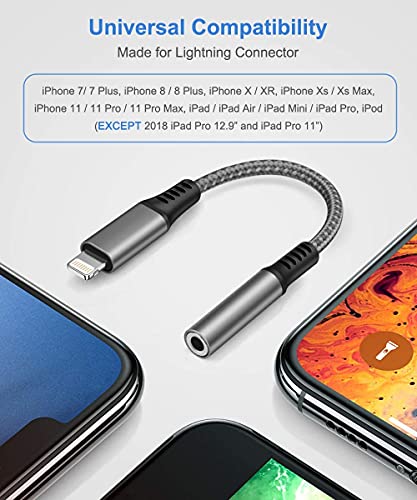 Apple Adattatore da Lightning a jack cuffie (3,5 mm)Treccia di nylon Adattatore Aux Jack Audio Compatibile per iPhone 12/12 Pro Max/12 Mini/11/11 Pro/X/SE/XR/8/7 Supporta tutti i sistemi iOS(2 pezzi)