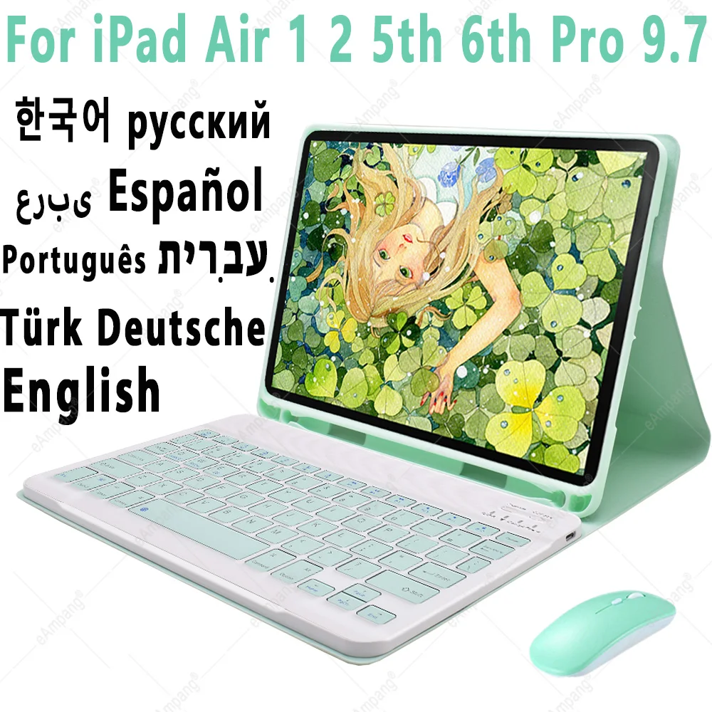 For Apple iPad 9.7 2017 2018 Air 2 6 5th 6th Gen Generation Russian Spanish English Korean Keyboard