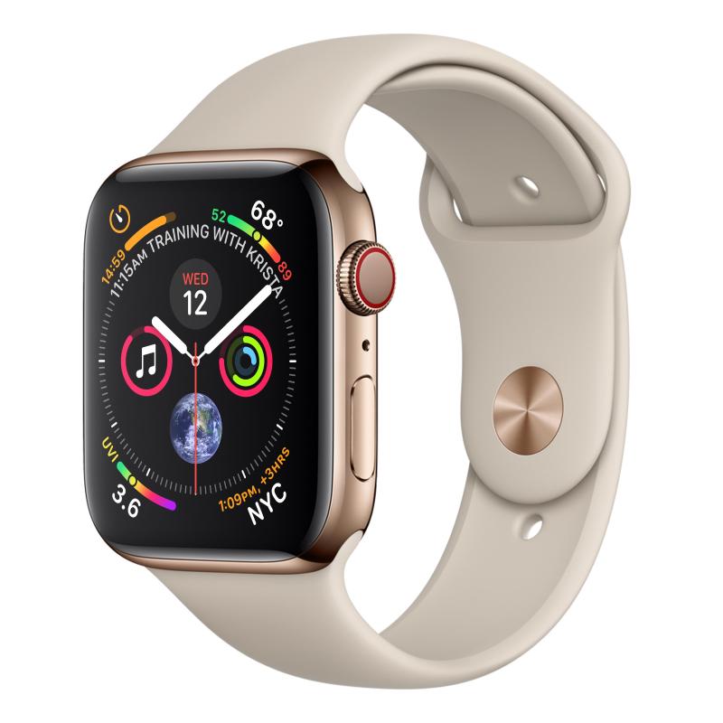 Apple watch serie 4 gps + cellular cassa 44mm acciaio oro con cinturino sport tortora