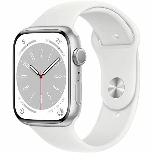 Apple Watch Series 8 GPS, cassa in alluminio argento da 45 mm, cinturino sportivo bianco - Regular