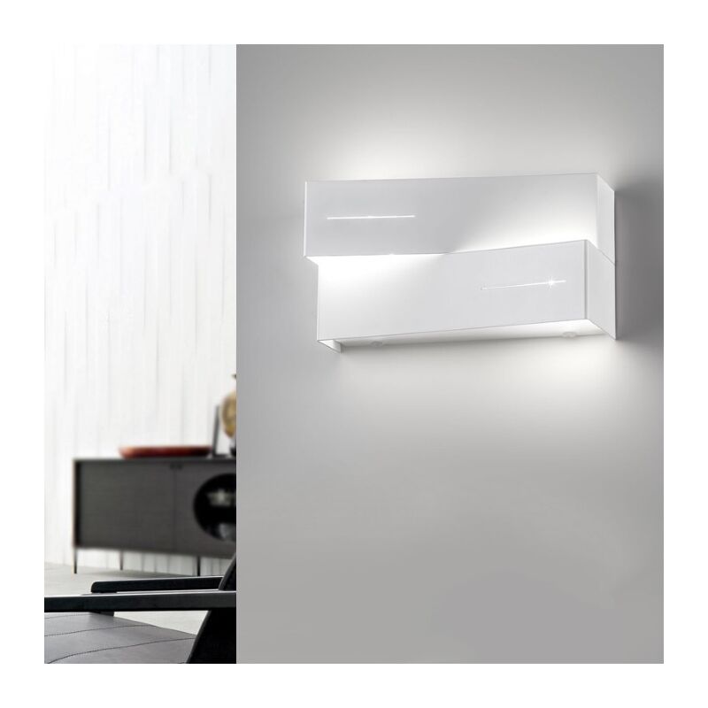 Applique da parete in metallo laccato bianco e vetri di protezione in cristallo extra-chiaro;