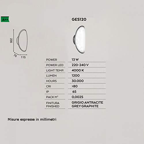 Applique Alluminio Policarbonato Gea Led Rhea Ges120 Led Lampada Parete Grigio Antracite Moderno Esterno Ip65