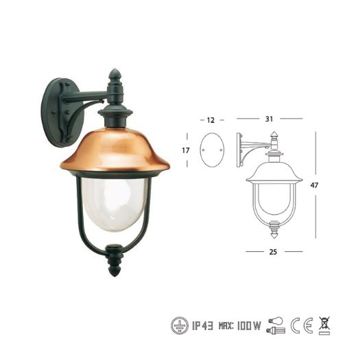 Applique in basso classica lampada da parete per esterno grigio-rame