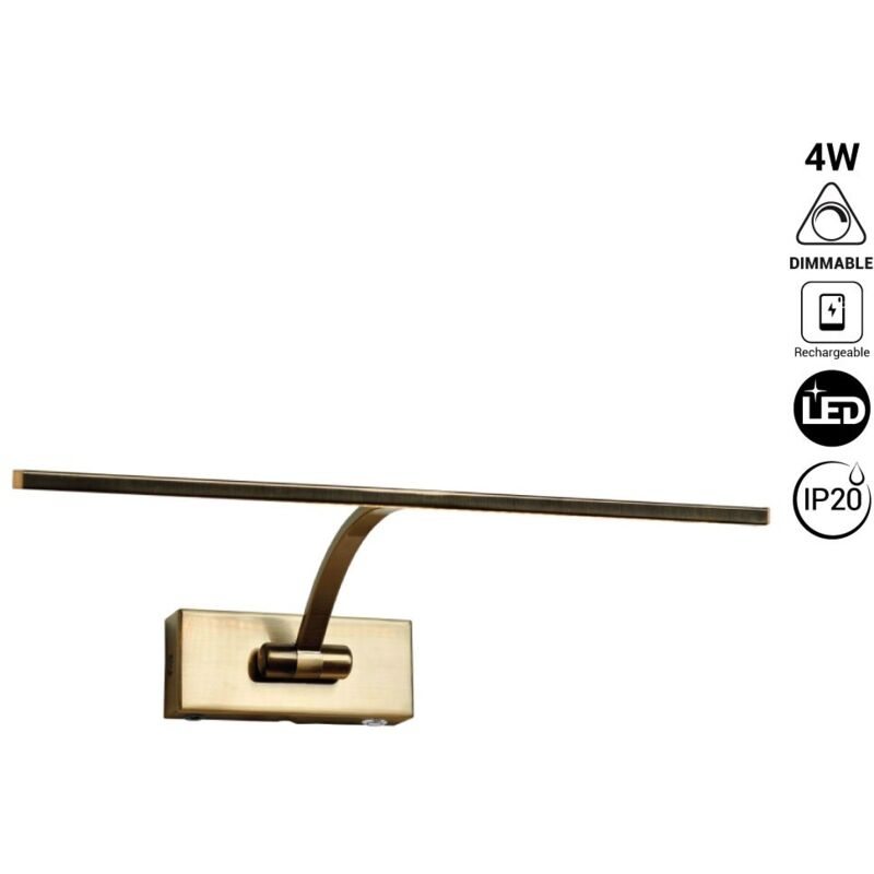 Applique LED dimmerabile - 4W dal design sottile ed elegante che si integra perfettamente in qualsiasi ambiente. Fornisce un'illuminazione luminosa e uniforme, senza ombre o bagliori. Permette di evidenziare ogni dettaglio dell'opera d'arte con precisione e chiarezza, rivelando sfumature e texture in modo eccezionale. È molto facile da installare e, grazie alla batteria ricaricabile incorporata, non richiede un collegamento elettrico. Disponibile nei colori bronzo, nero e cromo.