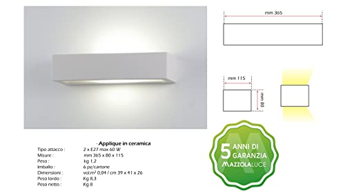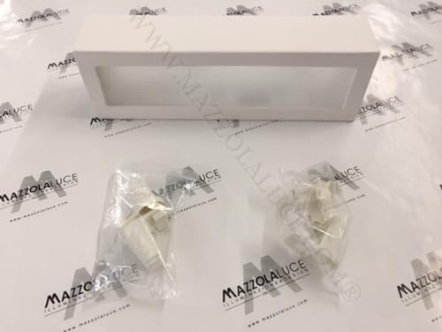 Applique bianca rettangolare 2 luci e27 luminoso di gesso verniciabile per interni Made in Italy con coperture in vetro