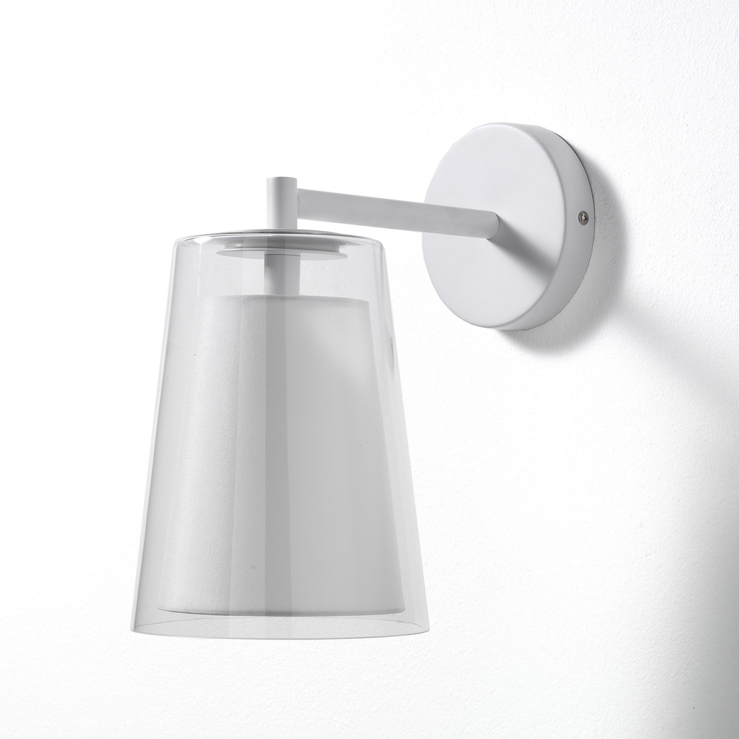 Pratica, bella, efficace. L'applique Kansas in bianco opaco di OresteLuchetta, brand del gruppo Tomasucci, rende la tua casa ancora più accogliente, creando un'atmosfera ancora più suggestiva. Ma non è tutto: il suo design ti permette di scegliere in che modo fissarla al tuo muro, poiché può essere montata sia verso il pavimento che verso il soffitto! Il paralume esterno è realizzato in vetro trasparente, mentre quello interno in tessuto bianco. La resistente struttura è in metallo bianco opaco. Dimensioni: 16x29x28 cm. Ø paralume: 16/11 cm. Potenza massima: 60 W. Necessita di una lampadina E27 non inclusa nella confezione.