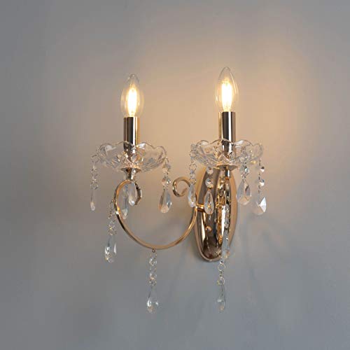 Applique a 2 bracci in cristallo barocco con ciondoli, colore: dorato - Pavia