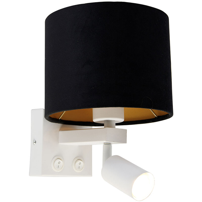 QAZQA Lampada da parete bianca con lampada da lettura e paralume 18 cm nero - Brescia Se dici interni moderni, dici Brescia! Questa lampada da parete ha un colore bianco ed è realizzata in acciaio. Il cappuccio è nero con oro/ottone all'interno. Brescia attira davvero l'attenzione per i tuoi interni. Brilla ancora di più con la luce da lettura per goderti il tuo libro a lungo. L'altezza della lampada è di 30 cm, la lunghezza è di 18 cm e la larghezza è di 22 cm. Assicurati di ordinare un'altra sorgente luminosa con attacco E27 e GU10 per completare la lampada. Questa lampada da parete è dimmerabile, ma non è incluso un dimmer. Con Brescia hai sempre la luce giusta in casa tua! Portalampada: E27 . Max 1 x 40 W, 230 V Adatto a: LED Voltaggio: 220V/230V IP Classe di protezione: [IP20] A prova di polvere Funzioni extra: Regolabile: Dimmer escluso Lampadine exclusiva Il QAZQA Lampada da parete bianca con lampada da lettura e paralume 18 cm nero - Brescia è Oro. Gli spazi abitativi adatti