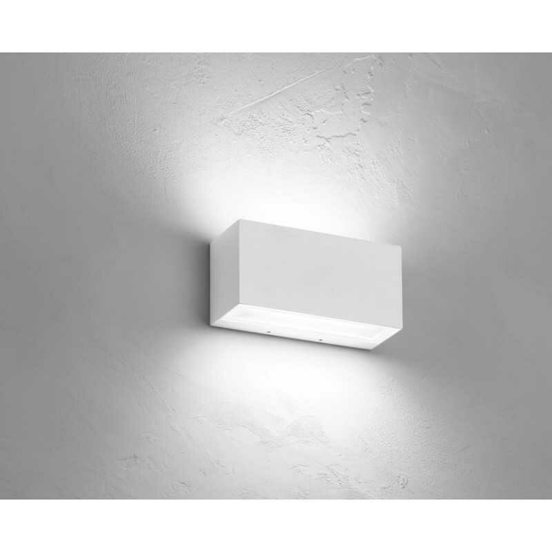 Applique LED BRIK rettangolare Nobile Installazione a parete Fascio luce bidirezionale Alimentazione: 220-240V Potenza: 2x15W Temperatura colore: 4000K Durata LED: 36000h LED dimmerabile Triac Materiale: Alluminio pressofuso Grado di protezione: IP65 Grado di resistenza agli urti: IK06 Colore: Bianco RAL9003 Dimensioni: 200x100x75mm Viti inox, base ed alimentatore inclusi
