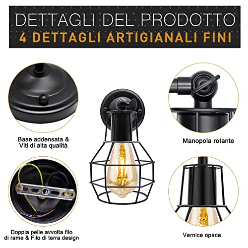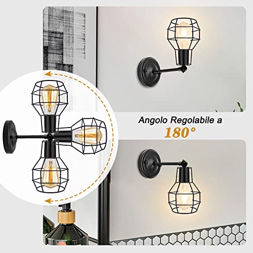 Applique Camera da Letto Vintage, Applique da Parete Interno Industriale with Gabbia Paralume Applique Bagno E27 Metallo Lampada da Parete Interno Regolabile a 180° Lampade da Muro, per Soggiorno