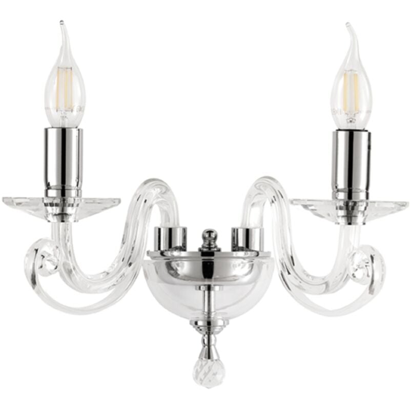 Lampada da parete CHERUBINI realizzata in vetro lavorato a mano con dettagli in metallo ed elementi decorativi in cristallo ottico. Lo stile elegante e contemporaneo rende questa sospensione adatta a soggiorno, salone, ingresso o camera da letto. CARATTERISTICHE Colore: Bianco Materiale: Metallo, vetro Tipologia: Applique Modello: 2 luci Altezza: 22 cm Larghezza: 26 cm Sporgenza: 17 cm Dimmerabile: No Illuminazione: 2 x E14 ( L'attacco E14 permette di installare lampadine a LED, fluorescenti o alogene non incluse ) Input: 220-230V