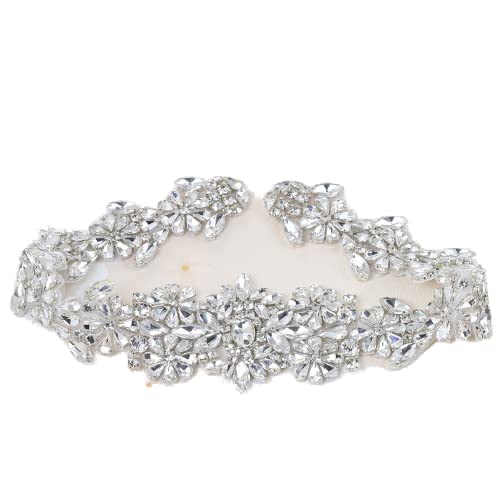 Applique per cintura vintage con strass e cristalli, per vestiti fai da te, da cucire o applicare con ferro da stiro, Sliver, 17.5*1.9 inches