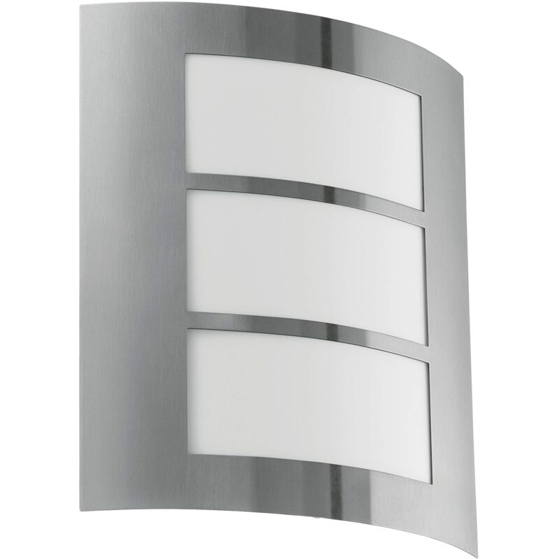 Collezione City LA LUCE CHE VALORIZZA LA TUA CASA CON QUALITÀ E STILE L'applique per esterni CITY è composta da un corpo in acciaio inox leggermente rigonfiato e da tre superfici luminose in plastica bianca satinata.. Grazie all'elevato grado di protezione (IP44), è adatta all'utilizzo in spazi esterni. Grazie al suo design senza tempo, questa applique si armonizza in qualsiasi ambiente esterno, che sia all'ingresso di casa, il terrazzo o il balcone.La lampadina, che non è inclusa nella confezione, deve essere scelta con attacco E27.
