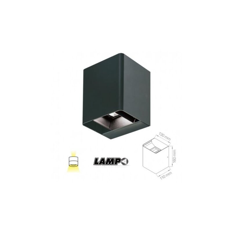 Applique led cubo biemissione antracite 2x9W 230V 4000°K IP65 - Lampo UPD2R18WANBN Il cubetto UPDOWN della Lampo è un'applique led per montaggio a parete colore antracite con doppio fascio luminoso regolabile. Grazie a delle particolari alette presente all'interno della lampada, il fascio di luce è regolabile, sia sopra che sotto a seconda della propria esigenza. Il grado di protezione IP65 lo rende ideale sia per installazioni da esterno che per interni. L'applique da parete è realizzato in lega di alluminio, ha una potenza di 2x9W, una tonalità di colore naturale 4000K, ed è alimentato a 220-240V, sviluppa un'intensità luminosa di 2x600 Lumen, con angolo di apertura regolabile da 0°-115°. Il faretto è ideale per l'illuminazione di facciate, ingressi, corridoi e altri punti specifici della casa o del giardino.