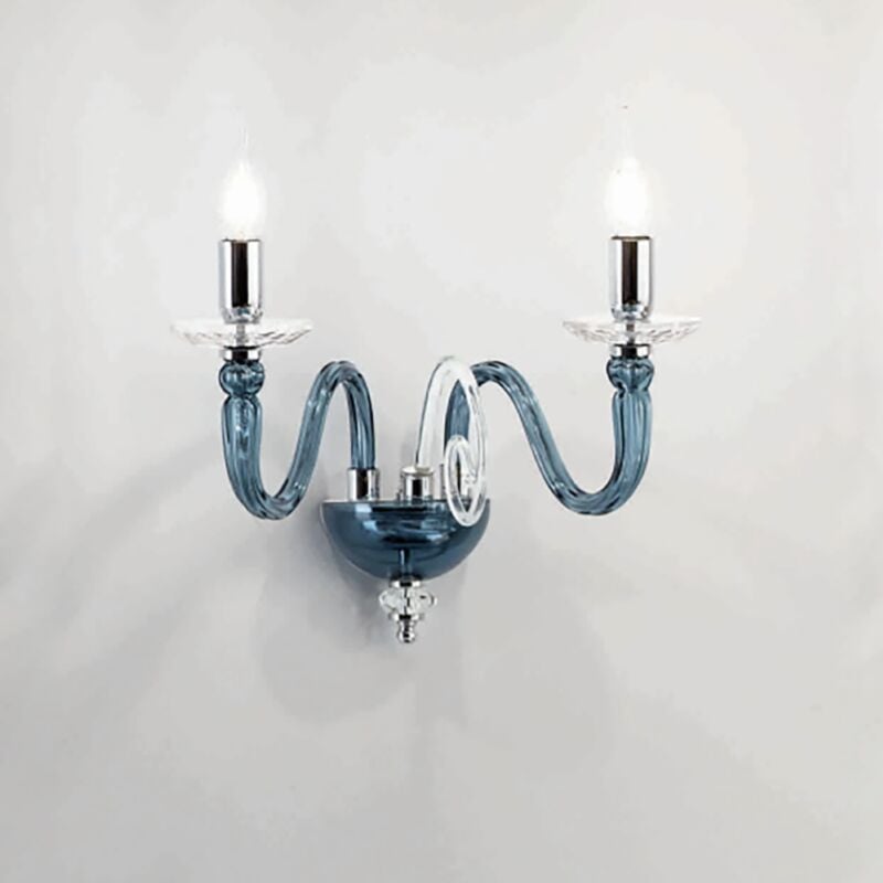 Lampada da parete DEBUSSY realizzata in vetro lavorato a mano con dettagli in cristallo ottico e finiture in metallo cromato. Un elemento dalle linee eleganti, ideale per illuminare e al tempo stesso arredare ingressi, salotti e soggiorni contemporanei. CARATTERISTICHE Colore: Ottanio Materiale: Vetro, metallo Tipologia: Applique Modello: 2 luci Altezza: 32 cm Larghezza: 38 cm Sporgenza: 20 cm Dimmerabile: NO Illuminazione: 2 x E14 (L'attacco E14 permette di installare lampadine a LED, fluorescenti o alogene non incluse). Input: 220-230V