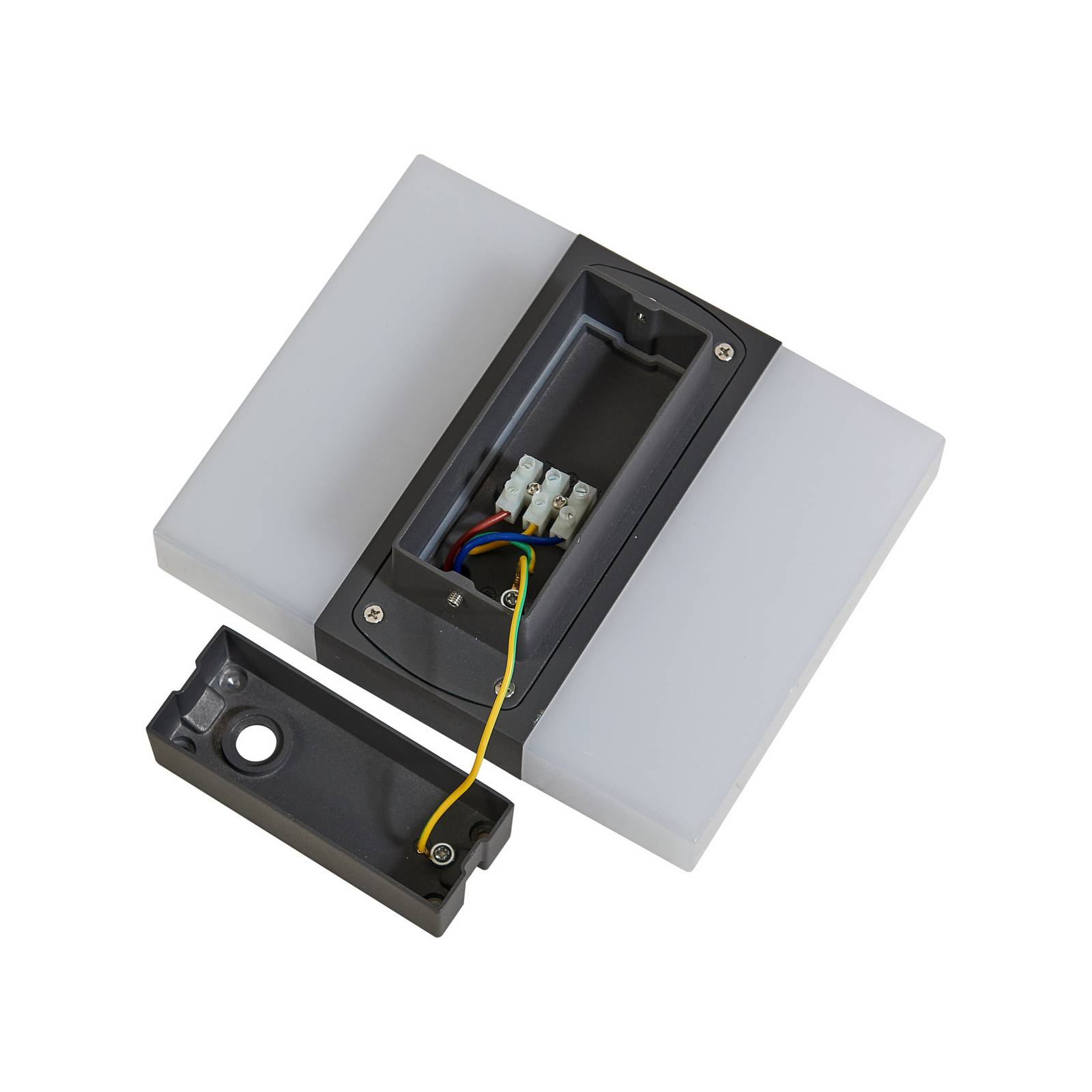 Applique da esterno Branor LED in alluminio grigio scuro L'applique da esterno Branor LED combina un design moderno con un'elevata funzionalità e un'illuminazione ad alta efficienza energetica. Con un grado di protezione IP54, questo apparecchio è stato progettato appositamente per l'uso esterno e resiste in modo affidabile alla polvere e agli spruzzi d'acqua. Il colore bianco caldo della luce crea un'atmosfera invitante che inonda di luce piacevole sia l'ingresso che il patio. Lo stile moderno dell'apparecchio si integra armoniosamente nell'architettura contemporanea e sottolinea l'estetica dell'area esterna. Grazie alla tecnologia LED ad alta efficienza energetica, l'applique da esterno contribuisce a ridurre il consumo energetico e offre una soluzione di illuminazione di lunga durata.