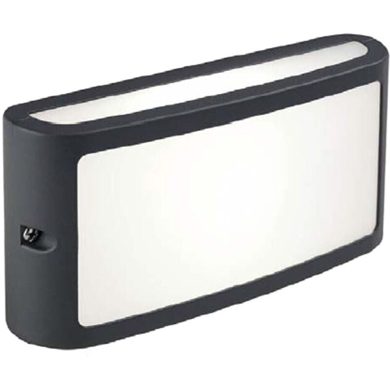 Applique in alluminio pressofuso. Finitura goffrata. Diffusore in resina satinata. Illuminazione a LED SMD. Luce di qualita' per ambienti esterni ed interni. Modulo LED sostituibile con sistema EASY CHANGE che consente la sostituzione senza necessita' di disinstallare la lampada dalla parete. Consumo: 10W. Resa: 100W. Risparmio energetico: 85% Flusso luminoso: 700 lumen. Temperatura di colore: 4000°K. Alimentazione: 230V.