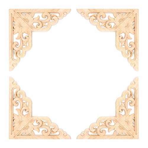 Applique intagliata, Applique ad Angolo, onlay da Parete 4 Pezzi Onlay Intagliato in Legno, per mobili per la casa