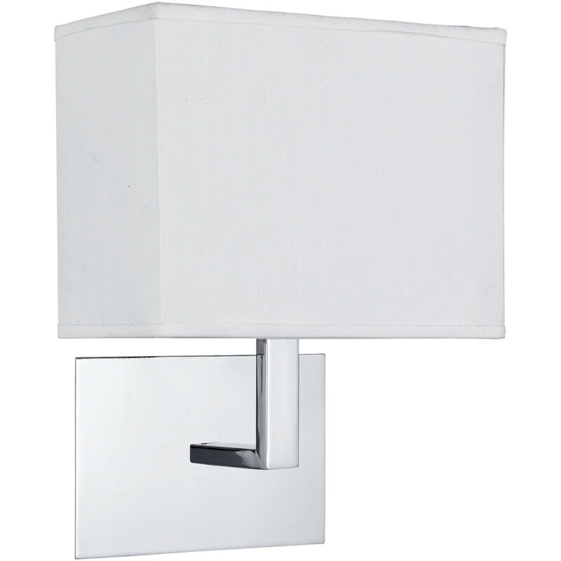 Collezione Hotel STILE DA HOTEL L'applique Hotel cromata a 1 luce ha un paralume rettangolare in tessuto bianco ed è elegante e classica. Ha una piastra da parete rettangolare con finitura cromata e un braccio ad angolo retto, con un sottile paralume bianco oblungo sopra. Fornisce un ambiente piacevole ed è controllato da un pratico interruttore a bilanciere.