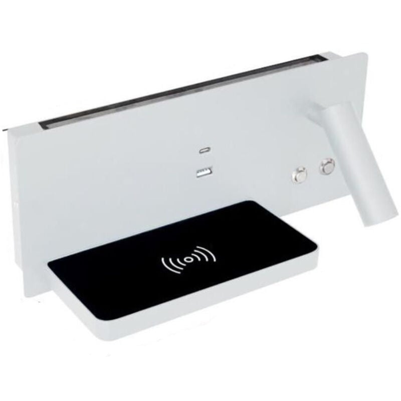 Applique Lampada Letto Parete Ricarica Wireless Bianca Luce Naturale FD-27B N.B Prima dell'acquisto controllare la posizione della luce in base alle proprie esigenze. Rivoluziona il tuo concetto di illuminazione domestica con la nostra lampada da parete multifunzionale con caricatore wireless integrato! Questo elegante applique non solo offre una luce brillante e regolabile per creare l'atmosfera perfetta in ogni ambiente, ma ti consente anche di mantenere i tuoi dispositivi sempre carichi e pronti all'uso senza ingombranti cavi. Caratteristiche tecniche: Applique da parete Doppio interruttore Colore: Bianco Potenza: 15W Grado di protezione: IP44 Fascio di luce superiore Temperatura della luce: Luce naturale 4000K Installazione murale (senza incasso) e semplice da collegare Porta Type-c Porta USB Ricarica Wireless (La funzionalità di ricarica wireless è compatibile solo con una selezione specifica di smartphone. Si consiglia di verificare la compatibilità del proprio dispositivo