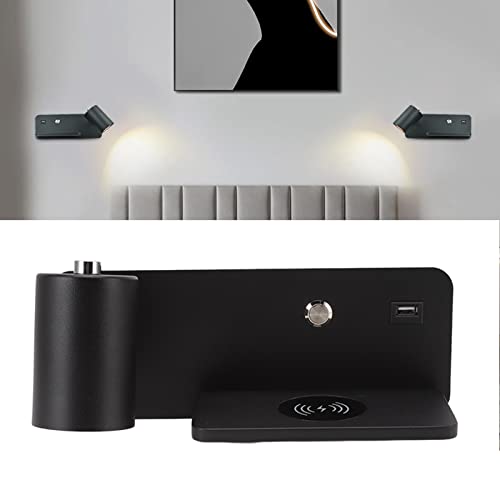 Applique a Led, Lampada Da Lettura a Parete Da Comodino Con Caricatore Wireless Da 5 V E Porta Di Ricarica Usb Lampada Da Parete Da Camera Da Letto Regolabile E Girevole Per Il(Sinistra Nera)