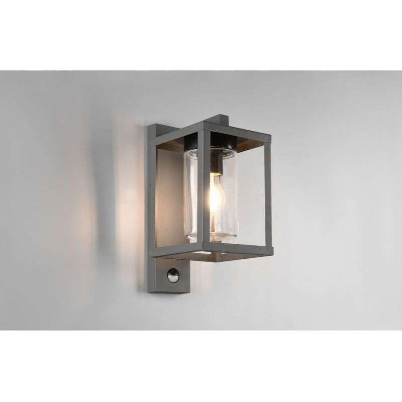 La lampada da parete LUNGA di Trio Lighting presenta una struttura in alluminio pressofuso squadrata a gabbia aperta di colore antracite e diffusore cilindrico in vetro trasparente. Sensore di movimento integrato che consente di avere un'accensione automatica fino a 8 metri con un angolo di emissione di 120°. È possibile installare una lampadina con attacco E27 da max 40 watt, acquistabile separatamente. Certificazione di isolamento IP44 che preserva il dispositivo da eventuali schizzi d'acqua. Un'applique squadrata dal design compatto e moderno, perfetta da collocare ad esempio in un ingresso, una facciata, una veranda o una zona giardino. Disponibile anche la versione con sensore crepuscolare.