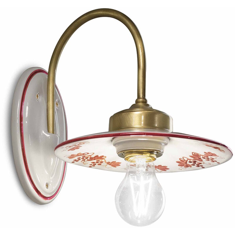 Collezione Classic Asti L'ARMONIA DEI DECORI Applique 1 Luce E27 diametro 22 cm in ceramica decoro Filo Verde Marcio con montatura Ottone Satinato frutto di una lavorazione eseguita rigorosamente a mano secondo le tecniche artigianali di una volta. L'armonia di un rassicurante passato ritorna nei materiali che compongono una linea dalle forme semplici ed essenziali. Il metallo e i decori dipinti a mano sulla ceramica sottolineano la maestria del lavoro manuale degli artigiani. La personalizzazione di ogni elemento rende la linea ancor più originale. Perfetta per illuminare un ingresso o un corridoio o poste per illuminare il divano nel vostro soggiorno in stile rustico o moderno mentre guardate comodamente la TV. E' disponibile anche nei colori Argento, Bianco, Bianco Sfumato Argento, Bianco Sfumato Oro, Nero, Nero Sfumato Argento, Nero Sfumato Oro, Nero Sfumato Rame, Ruggine, Verde Sfumato Oro.
