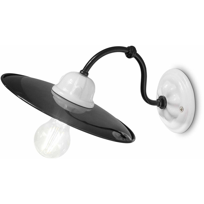 Collezione Classic Potenza L'ESSENZA DELLA SEMPLICITÀ Applique a braccio 1 Luce E27 diametro 25 cm h.21 cm in ceramica decoro Bianco Lucido con montatura Nera frutto di una lavorazione eseguita rigorosamente a mano secondo le tecniche artigianali di una volta. Gioca sul bicolore una linea essenziale e per questo adatta anche ad ambienti di gusto contemporaneo. L'abbinamento della ceramica bianca con il metallo smaltato nero e bianco lucido conferisce un aspetto semplice e deciso che non cede il passo alla nostalgia. Un elemento di stile ma anche funzionale e bello da ammirare grazie al braccio leggermente ricurvo ed i colori smaltati. Una scelta ottimale per creare nuovi abbinamenti di design sia in un appartamento dal design rustico o contemporaneo che in ambienti di ristoro.