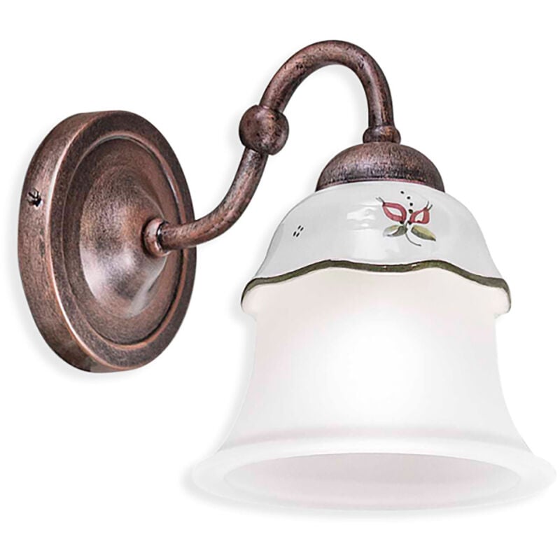 Collezione Classic Ferrara L'OPEROSITÀ DELLA VITA DI CAMPAGNA Applique a braccio 1 Luce E14 diametro 15 cm in ceramica decoro Filo Verde Marcio con tazzina in vetro acidato e con montatura Nero Sfumato Rame frutto di una lavorazione eseguita rigorosamente a mano secondo le tecniche artigianali di una volta. Si respira ancora l'aria assolata di Ferrara, immersa nella campagna romagnola, nella linea di sospensioni e applique da cui prende il nome. Con la nostalgia dei rustici di primo novecento nei dettagli degli smerli dipinti a mano, dei cordoni ritorti e del vetro acidato. Ideale per illuminare l'angolo relax del vostro soggiorno in stile classico o per accogliervi all'ingresso della vostra casa rustica. I decori della ceramica sono personalizzabili secondo i propri gusti. E' disponibile anche nei colori Argento, Bianco Sfumato Argento, Bianco, Bianco Sfumato Oro, Nero, Nero Sfumato Argento, Nero Sfumato Oro, Ruggine, Verde Sfumato Oro.