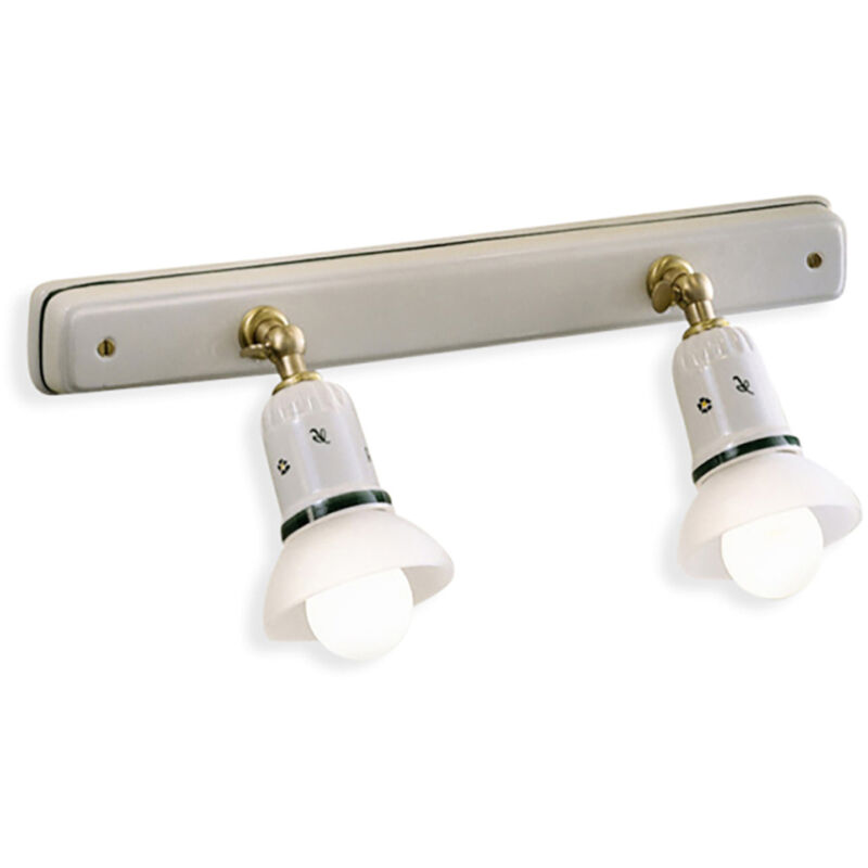 Collezione Classic Savona ILLUMINARE CON ELEGANZA E DISCREZIONE Applique 2 Luci E14 in ceramica decoro Filo Verde e Fiori con montatura Ottone Satinato frutto di una lavorazione eseguita rigorosamente a mano secondo le tecniche artigianali di una volta. Savona è una linea completa di faretti in ceramica dipinta a mano pensata per completare l'illuminazione degli ambienti laddove sono necessari punti luce discreti e al tempo stesso originali. L'ottone scelto per le parti metalliche riscalda e dà un tocco di eleganza. In particolare quest'applique direzionabile con i diffusori in ceramica finemente dipinti e predisposti su una piccola base di ceramica rettangolare si presta a completare l'arredamento di un bagno se posta come punto luce sullo specchio. I decori sono personalizzabili in base alle proprie esigenze. E' disponibile anche nei colori Argento, Bianco, Bianco Sfumato Argento, Bianco Sfumato Oro, Nero, Nero Sfumato Argento, Nero Sfumato Oro, Nero Sfumato Rame, Ruggine, Verde