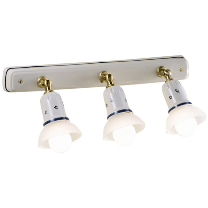Collezione Classic Savona ILLUMINARE CON ELEGANZA E DISCREZIONE Applique 3 Luci E14 in ceramica decoro Filo Blu e Fiori con montatura Ottone Satinato frutto di una lavorazione eseguita rigorosamente a mano secondo le tecniche artigianali di una volta. Savona è una linea completa di faretti in ceramica dipinta a mano pensata per completare l'illuminazione degli ambienti laddove sono necessari punti luce discreti e al tempo stesso originali. L'ottone scelto per le parti metalliche riscalda e dà un tocco di eleganza. In particolare quest'applique direzionabile con i diffusori in ceramica finemente dipinti e predisposti su una piccola base di ceramica rettangolare si presta a completare l'illuminazione di una cucina rustica se posta in un determinato angolo dove magari c'è bisogno di più luce. I decori sono personalizzabili in base alle proprie esigenze. E' disponibile anche nei colori Argento, Bianco, Bianco Sfumato Argento, Bianco Sfumato Oro, Nero, Nero Sfumato Argento, Nero Sfumato
