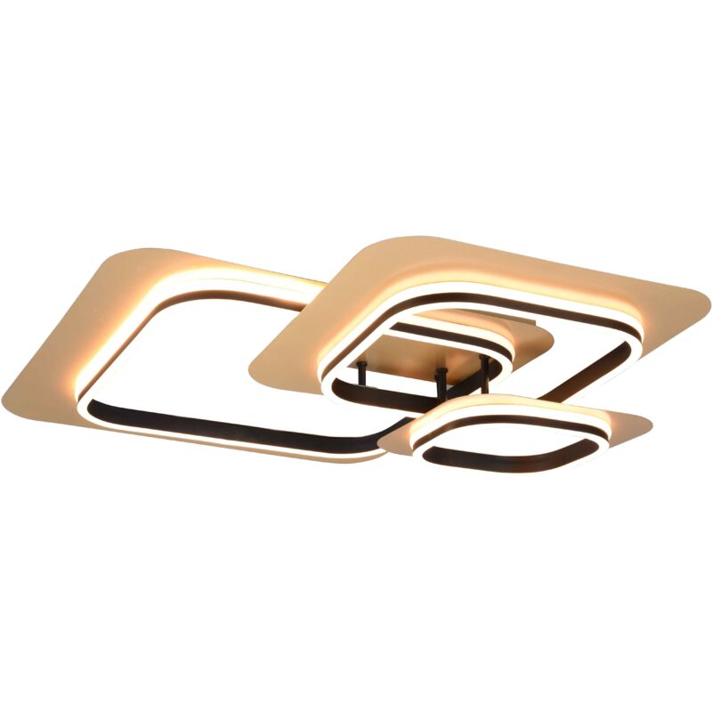 Materiale: metallo Colore: oro nero Dimensioni: L74 x H13 x P74 cm Elettrificazione: incl. 1x SMD, 50W · 1x 6150lm, 3000K Lampadina inclusa: sì Caratteristiche prodotto: IP20 Montaggio a soffitto Non adatto per dimmer esterno Dimmerabile tramite interruttore