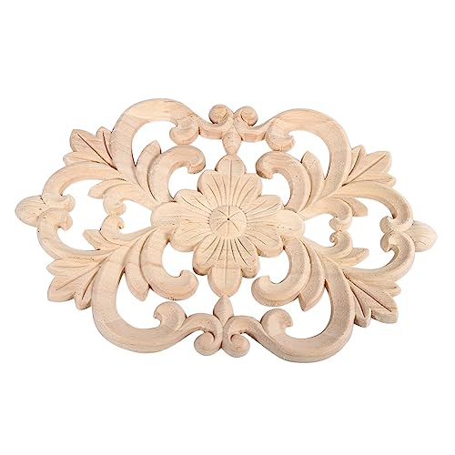 Applique per mobili, applique con intarsio in legno intagliato nuovo design 1pc, applique per mobili non verniciata per la decorazione dell'armadio della porta di casa, elegante e classica (22*14CM)