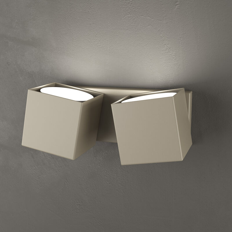 Collezione Rotation LA LUCE ORIENTABILE E PERSONALIZZATA Applique 2 luci realizzate con cubi di metallo roteanti a 360° di finitura sabbia.. Queste lampade ti offrono la possibilità di orientare la luce in tutte le direzioni, semplicemente modificandola all'occorrenza. Puoi creare effetti di luce diversi e adattare l'illuminazione alle tue esigenze e preferenze. La Serie Rotation non usa led integrati, ma una lampadina Gx53 che puoi sostituire facilmente dall'esterno. La Serie Rotation è una collezione che unisce la praticità e la qualità, per creare un'illuminazione dinamica e funzionale. Scopri la Serie Rotation e lasciati sorprendere dalla sua versatilità e originalità.Questo articolo è disponibile in diverse finiture e/o dimensioni. E' possibile indicarlo nell'apposito campo NOTE presente in conclusione di ordine oppure contattarci dopo aver effettuatol'ordine.