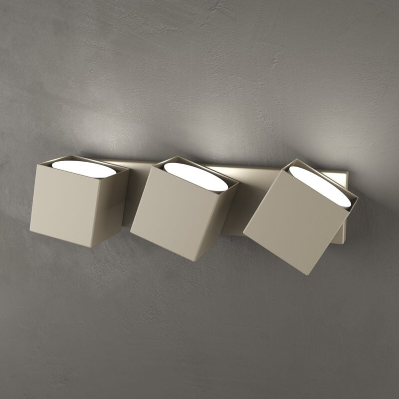 Collezione Rotation LA LUCE ORIENTABILE E PERSONALIZZATA Applique 3 luci realizzate con cubi di metallo roteanti a 360° di finitura sabbia.. Queste lampade ti offrono la possibilità di orientare la luce in tutte le direzioni, semplicemente modificandola all'occorrenza. Puoi creare effetti di luce diversi e adattare l'illuminazione alle tue esigenze e preferenze. La Serie Rotation non usa led integrati, ma una lampadina Gx53 che puoi sostituire facilmente dall'esterno. La Serie Rotation è una collezione che unisce la praticità e la qualità, per creare un'illuminazione dinamica e funzionale. Scopri la Serie Rotation e lasciati sorprendere dalla sua versatilità e originalità.Questo articolo è disponibile in diverse finiture e/o dimensioni. E' possibile indicarlo nell'apposito campo NOTE presente in conclusione di ordine oppure contattarci dopo aver effettuatol'ordine.